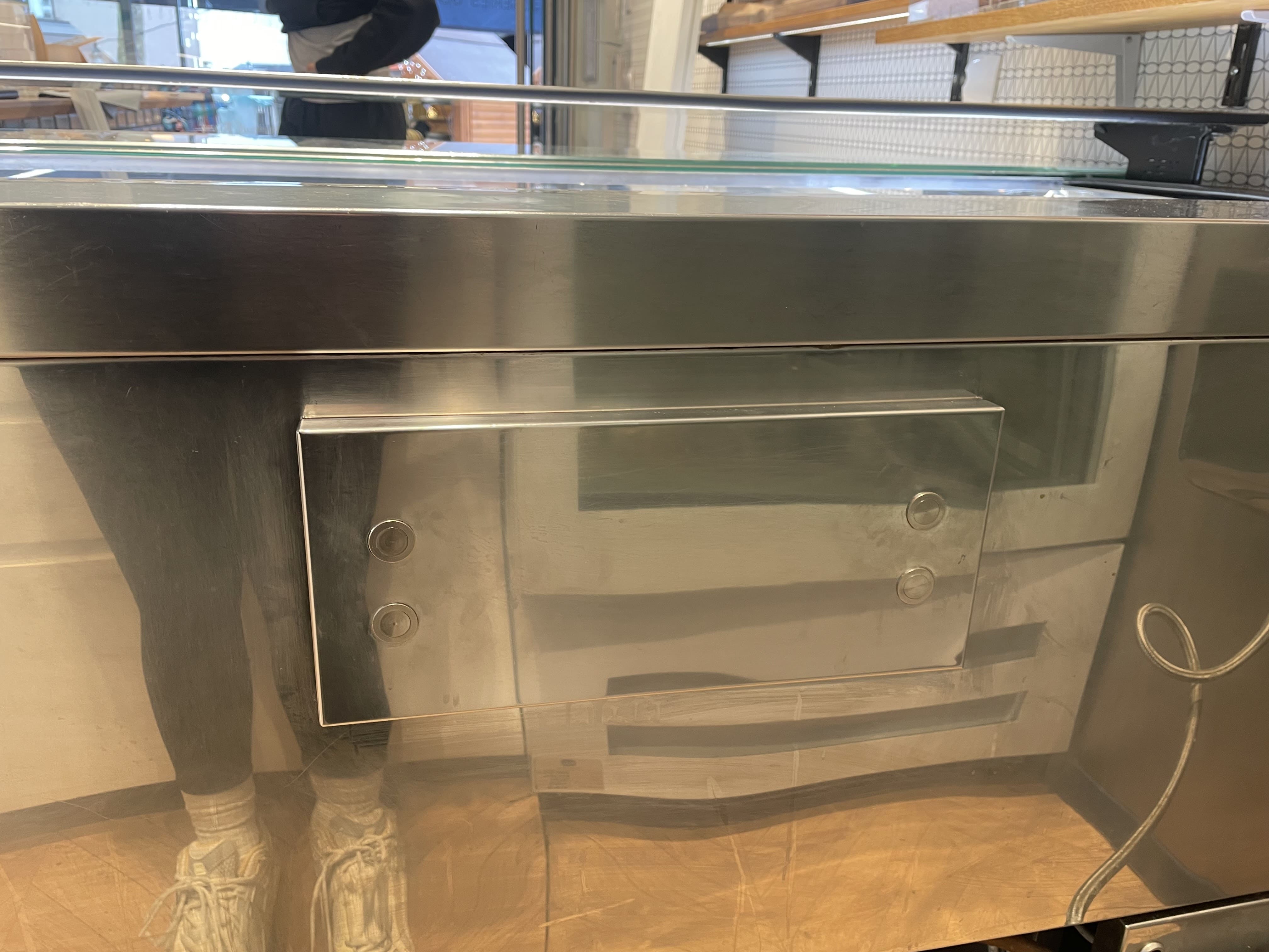Exposition plate vitrée sur l’avant et le dessus, ouverture électrique par coulissement de la vitre horizontalement.