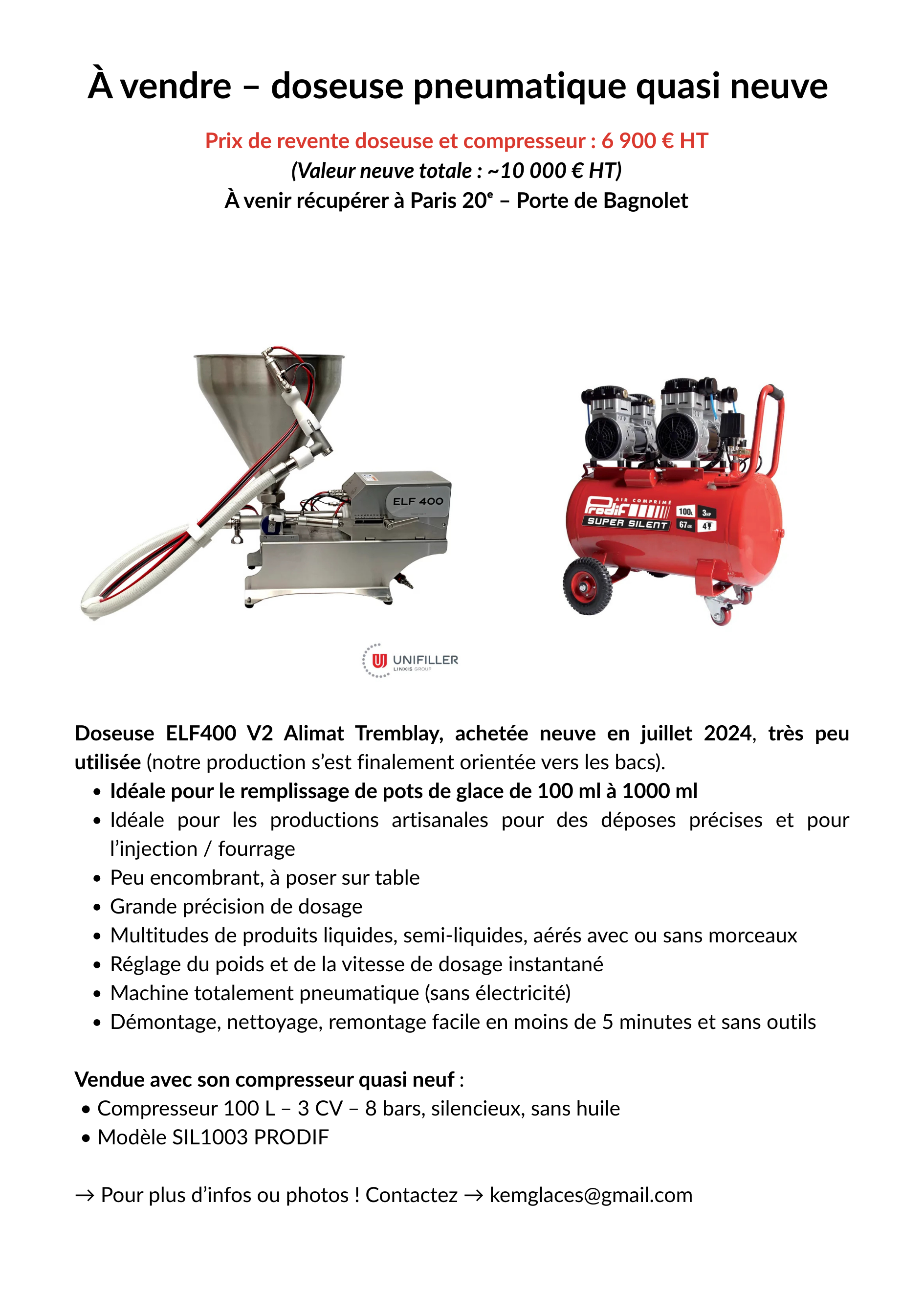 ? Prix de revente doseuse et compresseur : 6 900 € HT